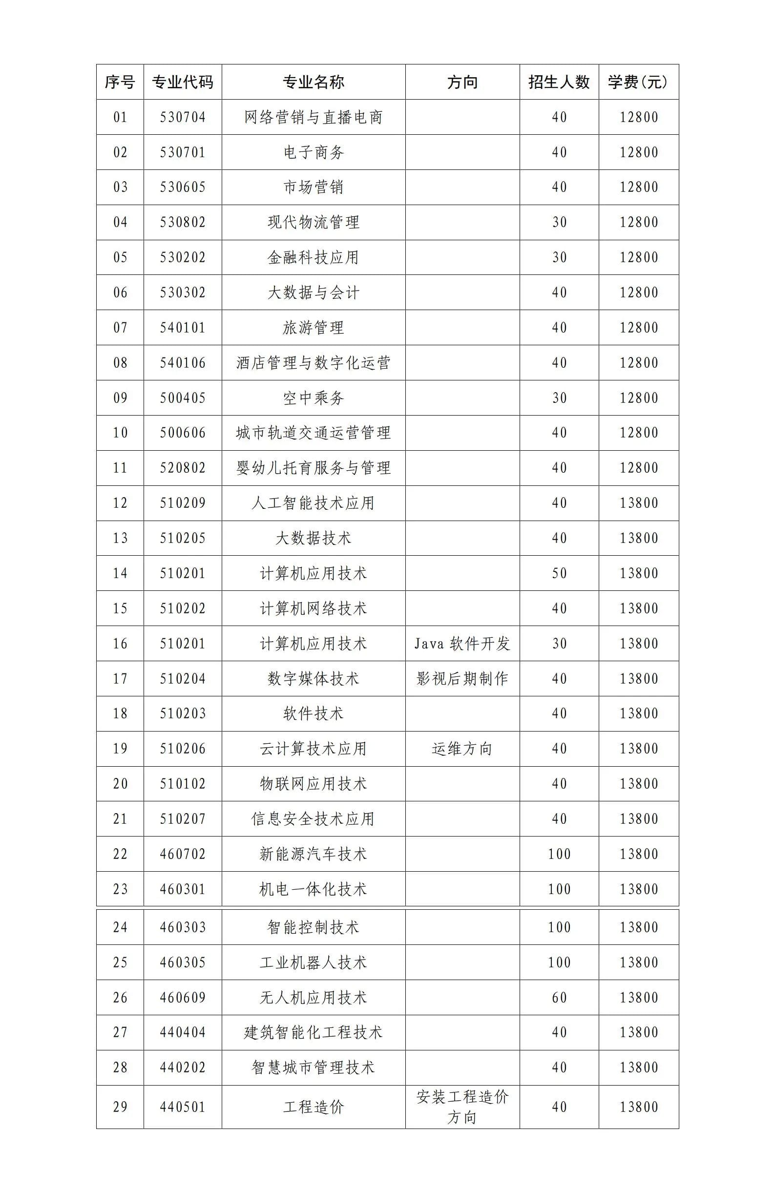 1.2024年学校单独考试招生专业、计划及学费详表(附后)。