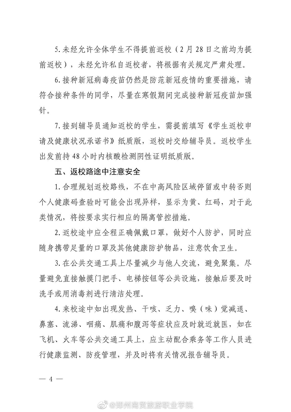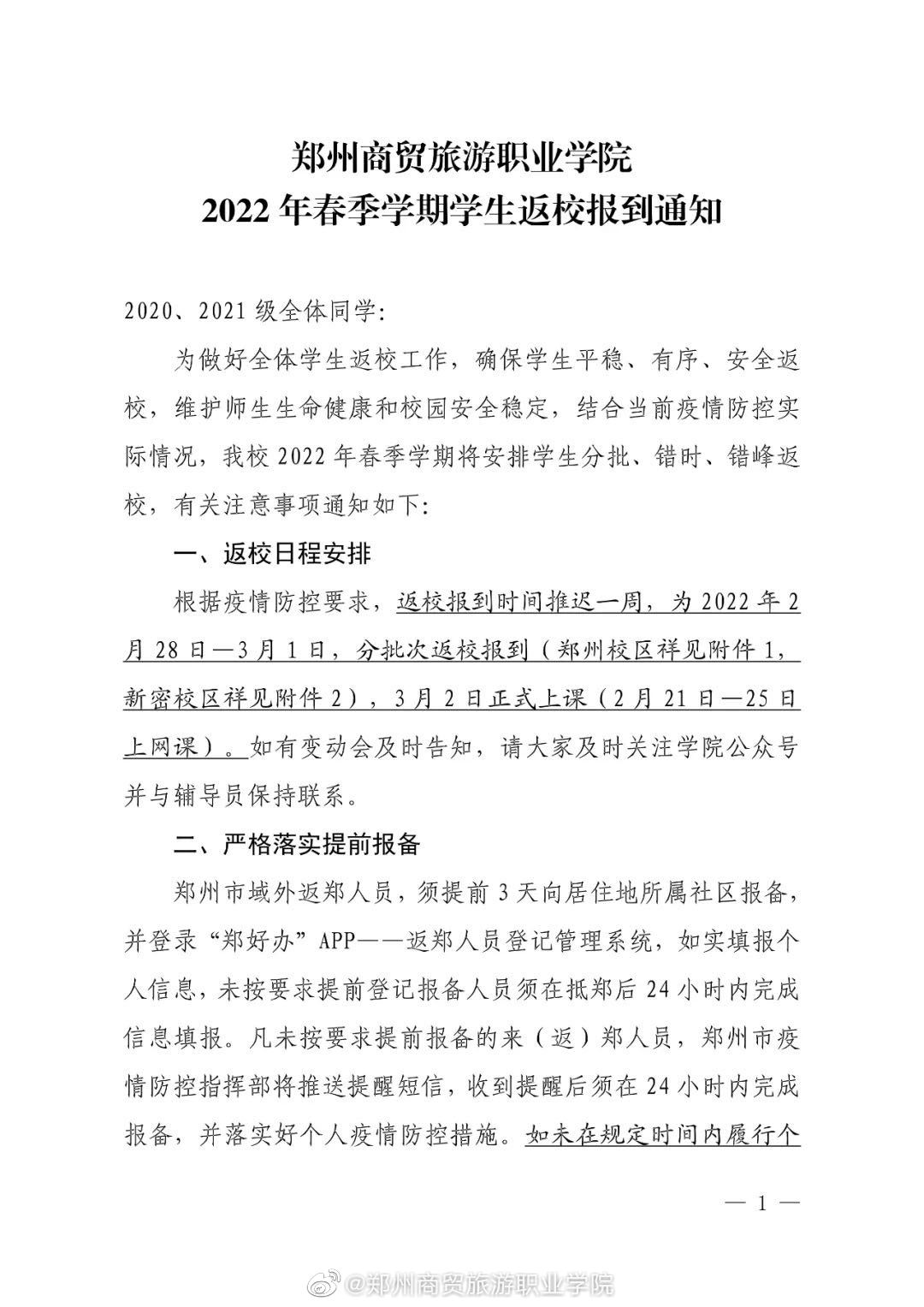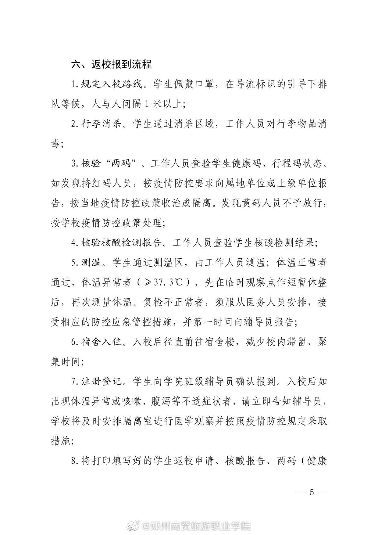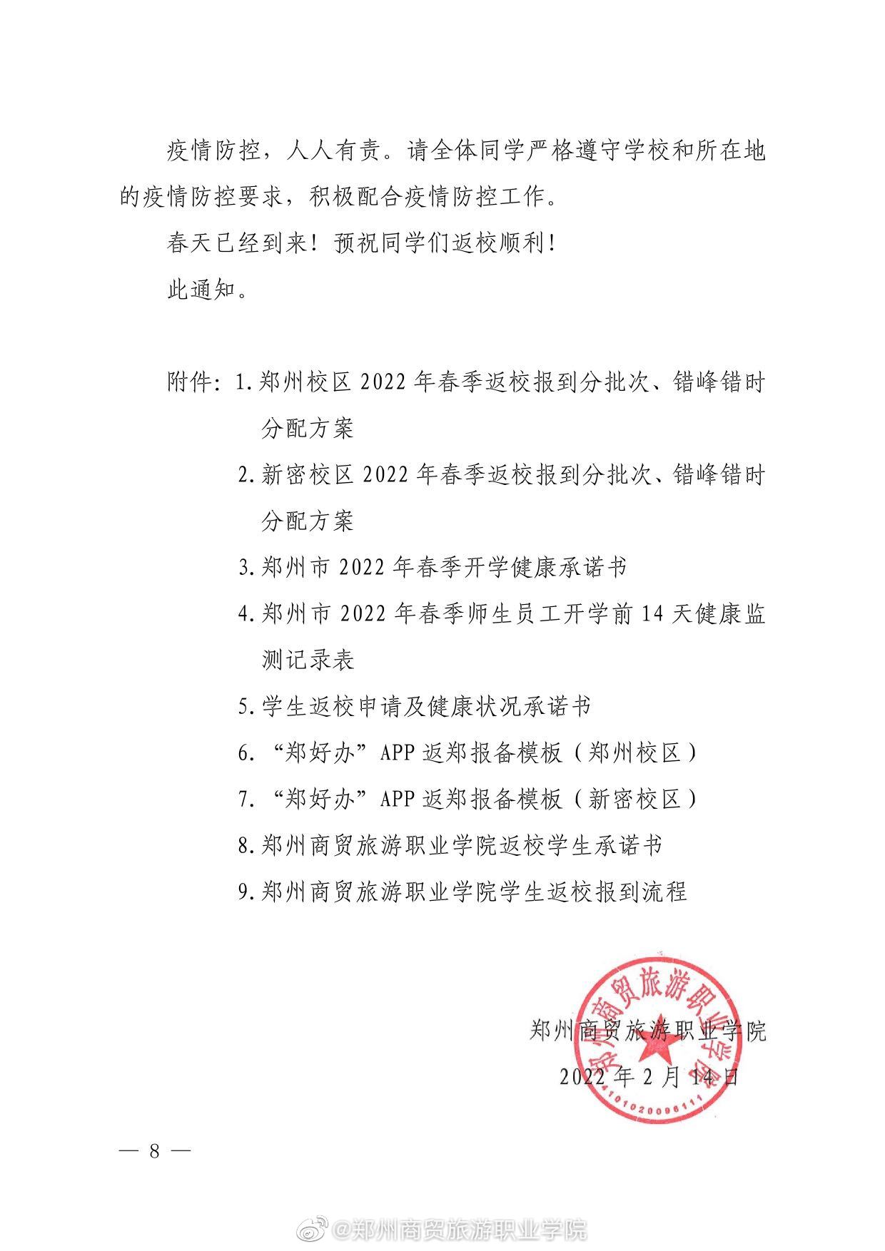 郑州商贸旅游职业学院2022年春季学期学生返校报到通知