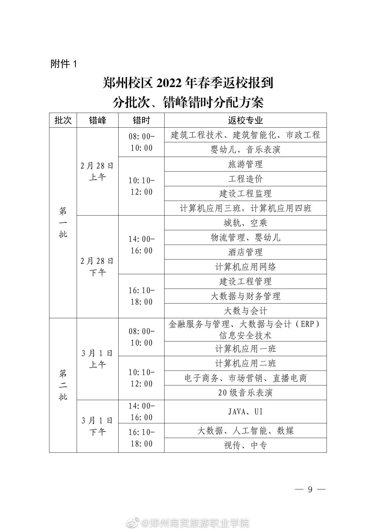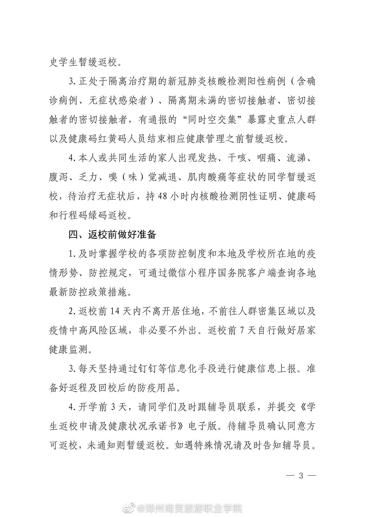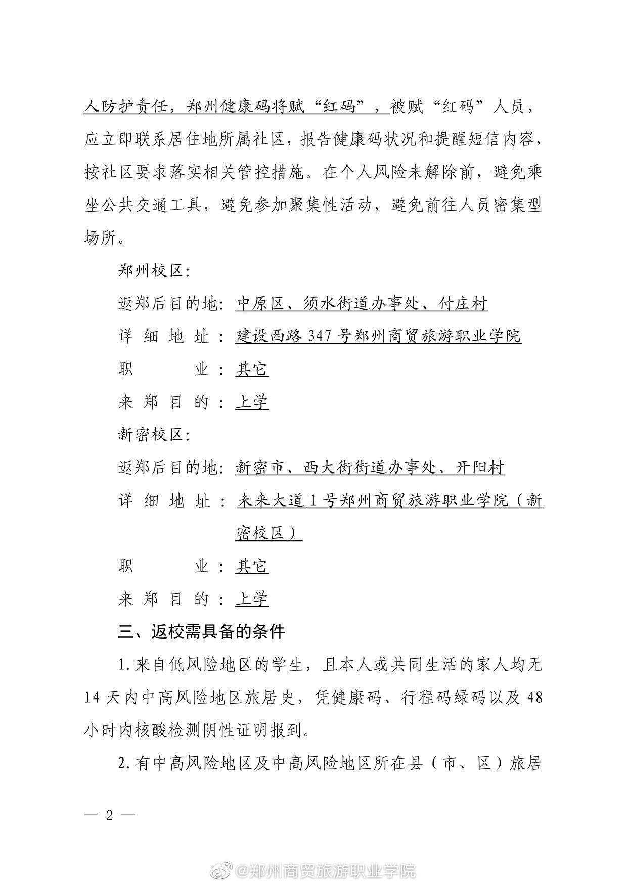 郑州商贸旅游职业学院2022年春季学期学生返校报到通知