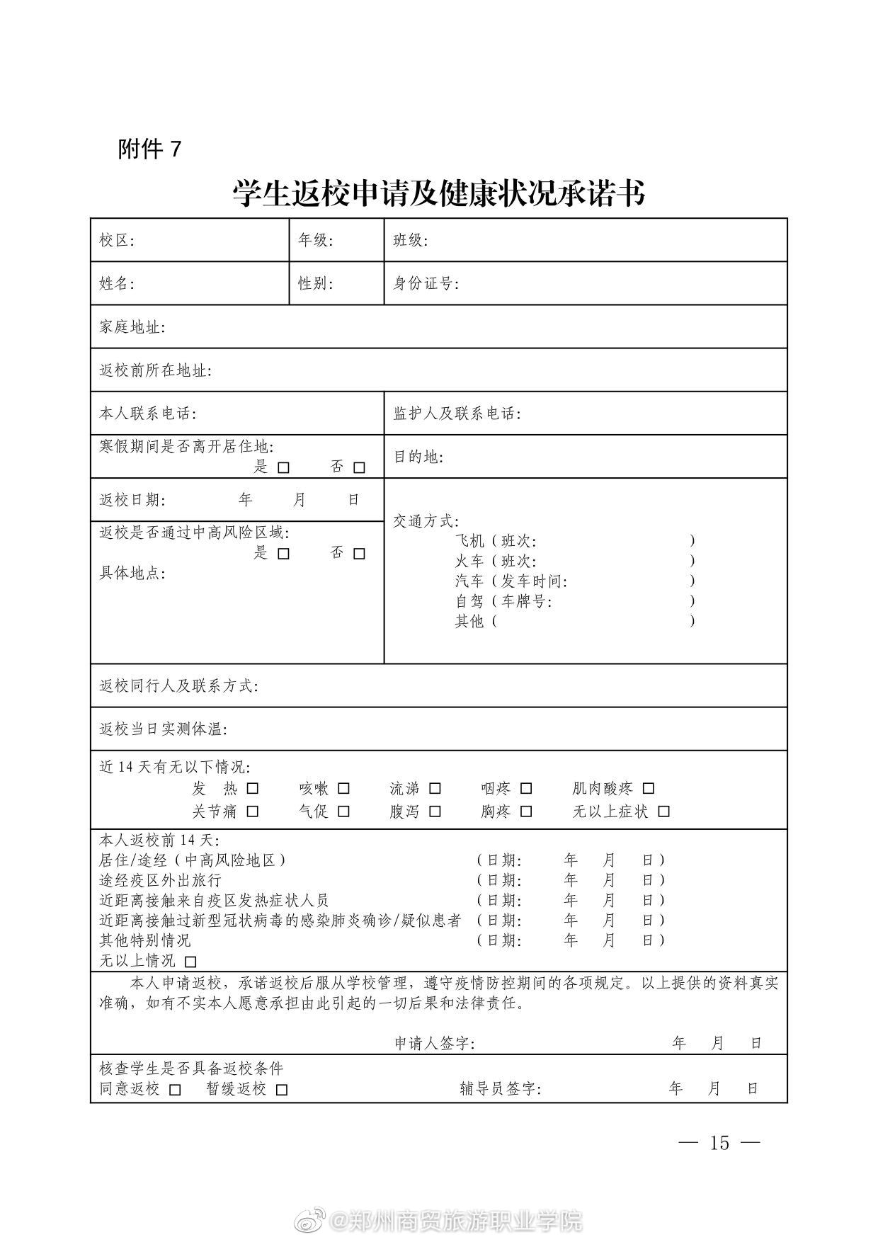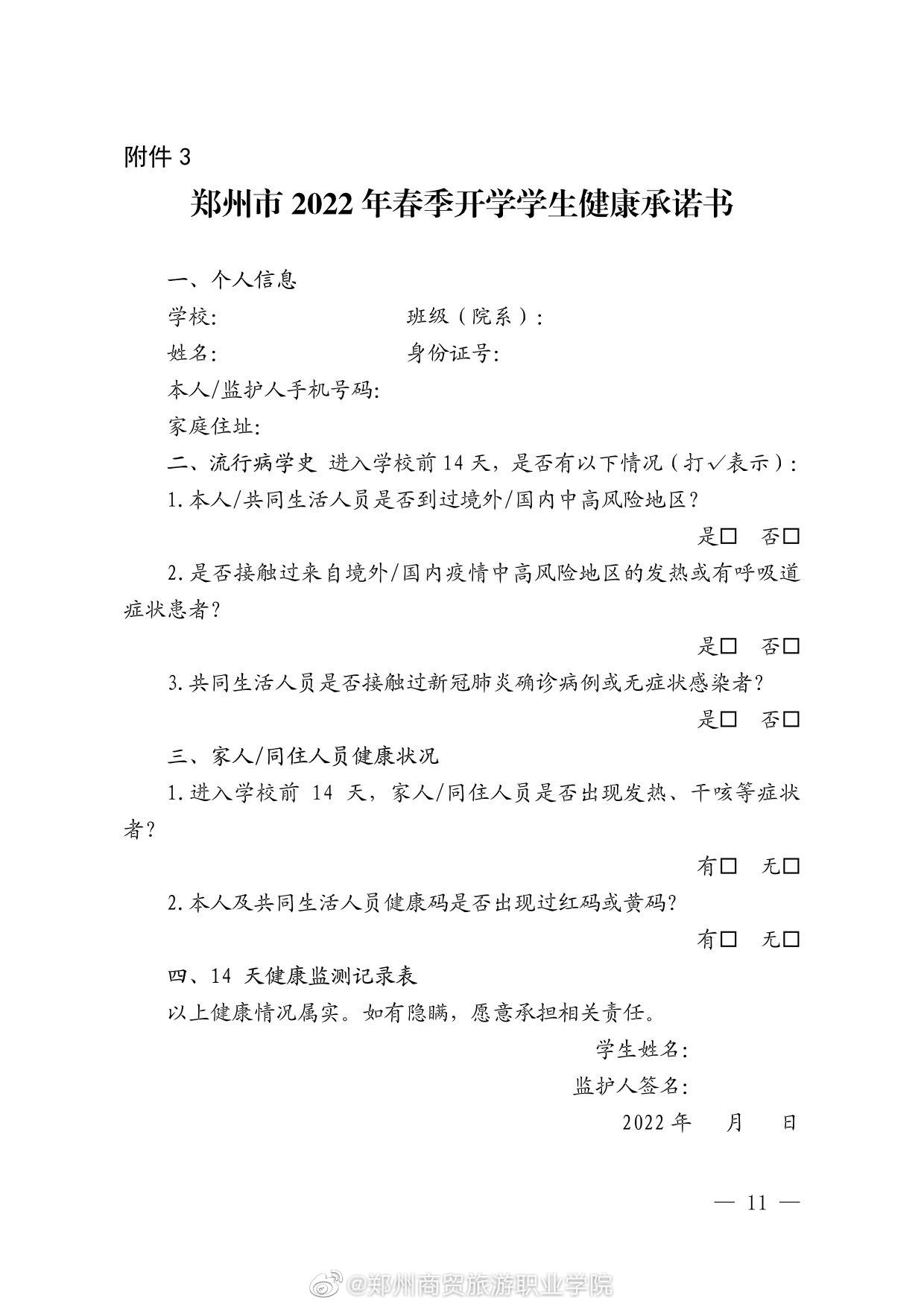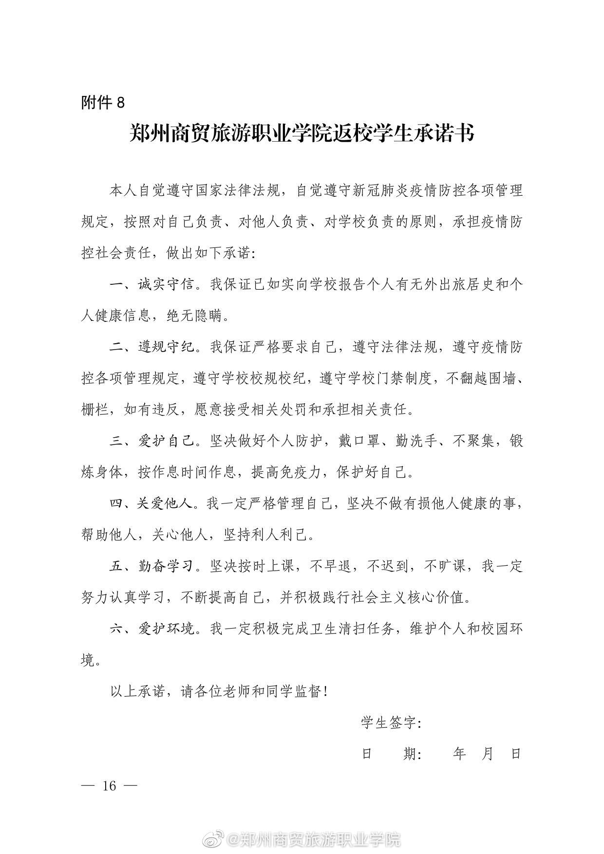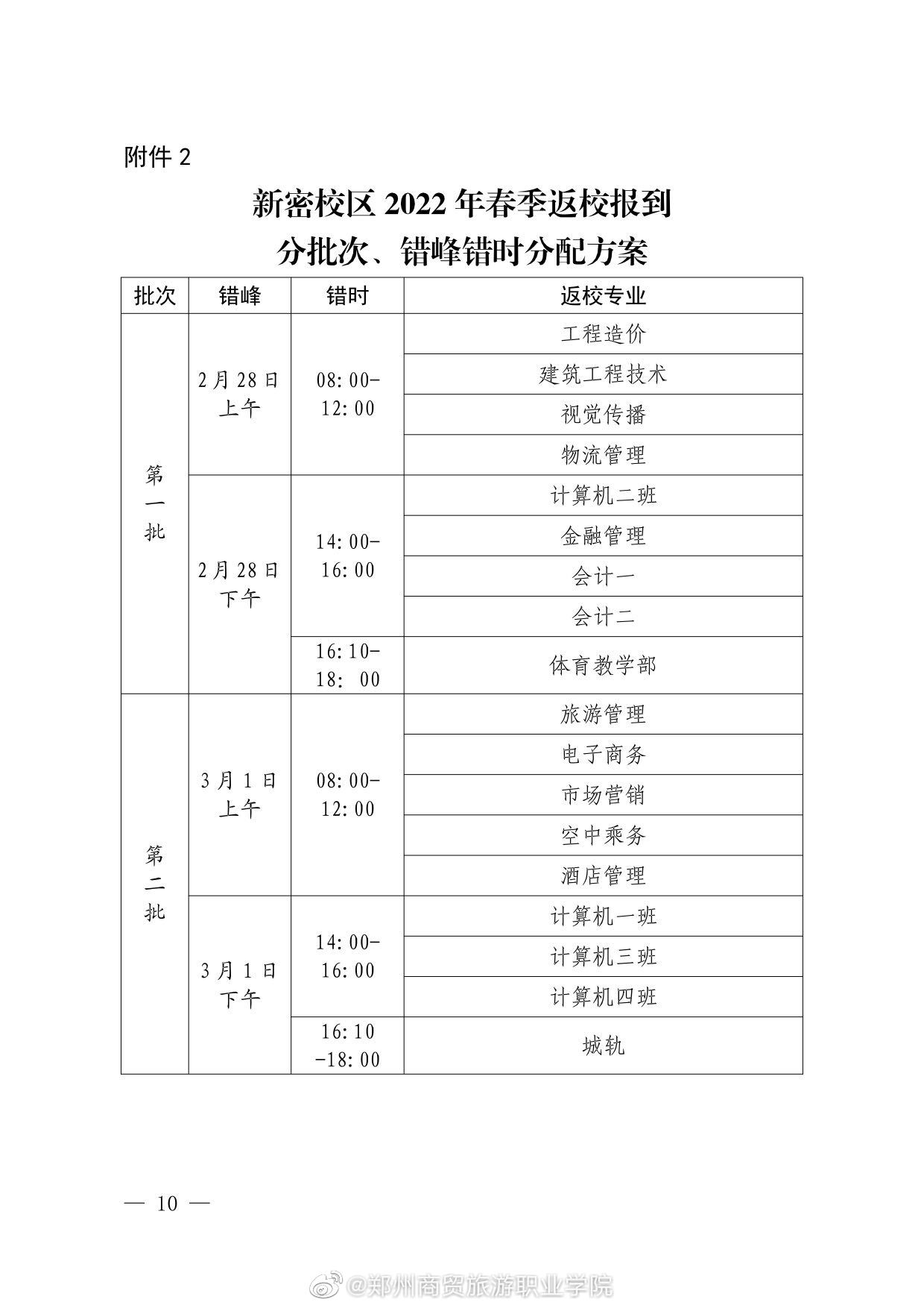 郑州商贸旅游职业学院2022年春季学期学生返校报到通知