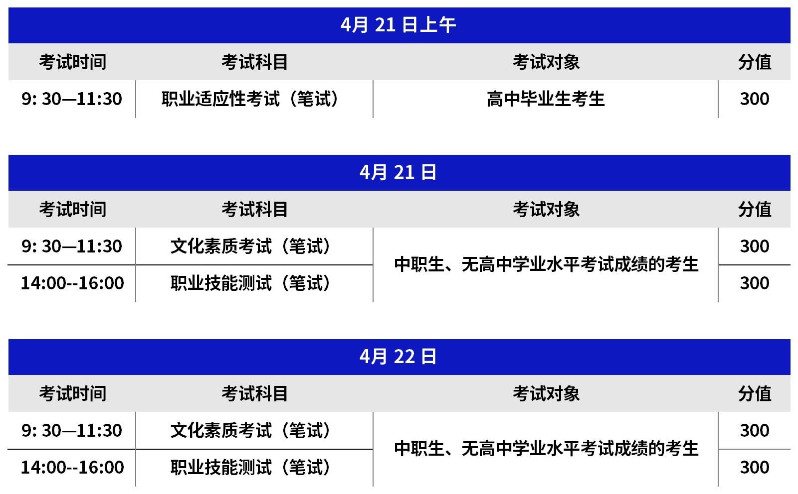 考试时间:4月21日-22日(具体场次安排请查看准考证)