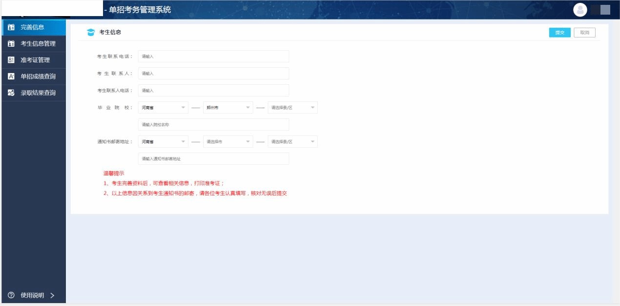 考生信息完善(此项操作非常重要)